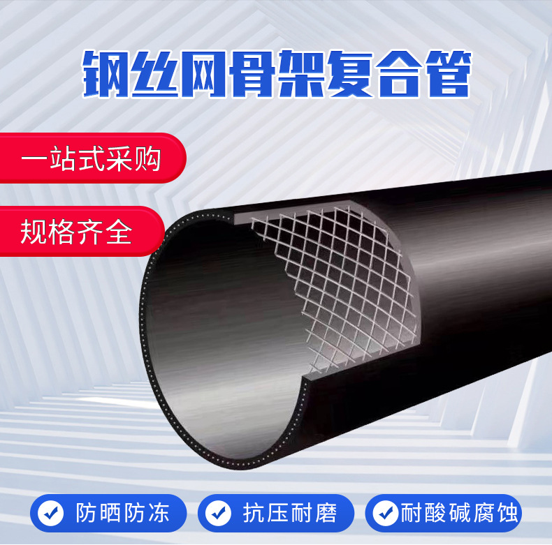 PE鋼絲網(wǎng)骨架塑料復(fù)合管是以高強(qiáng)度鋼絲和聚乙烯塑料為原材料,以纏繞成型的高繩度鋼絲為芯層,以高密度聚乙烯塑料為內(nèi)、外層 ,形成整體管壁的一種新型復(fù)合結(jié)構(gòu)管材。復(fù)合管加入鋼絲增強(qiáng)網(wǎng),不但在管材耐壓能力上比PE實(shí)壁管有了很大的提高,同時(shí)還保留了PE實(shí)壁管優(yōu)異的耐腐蝕性、無水垢等特點(diǎn)。其增強(qiáng)體被包覆在連續(xù)熱熔性塑料之中,保證了鋼絲與外界的隔離,使得鋼絲的使用壽命更長久,保證管材長久的耐幫性能。
